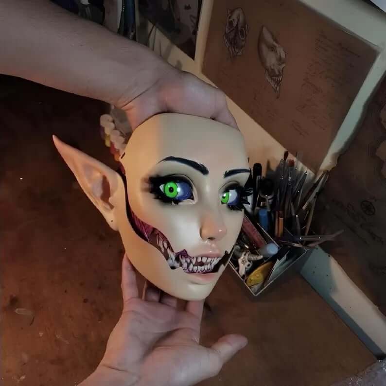 Application Scenarios: This mask can be used for Halloween and themed parties, helping the wearer quickly immerse in a fantasy or dark atmosphere. It can also serve as an artistic creation displayed at craft exhibitions or studio showcases, highlighting the creator's style.